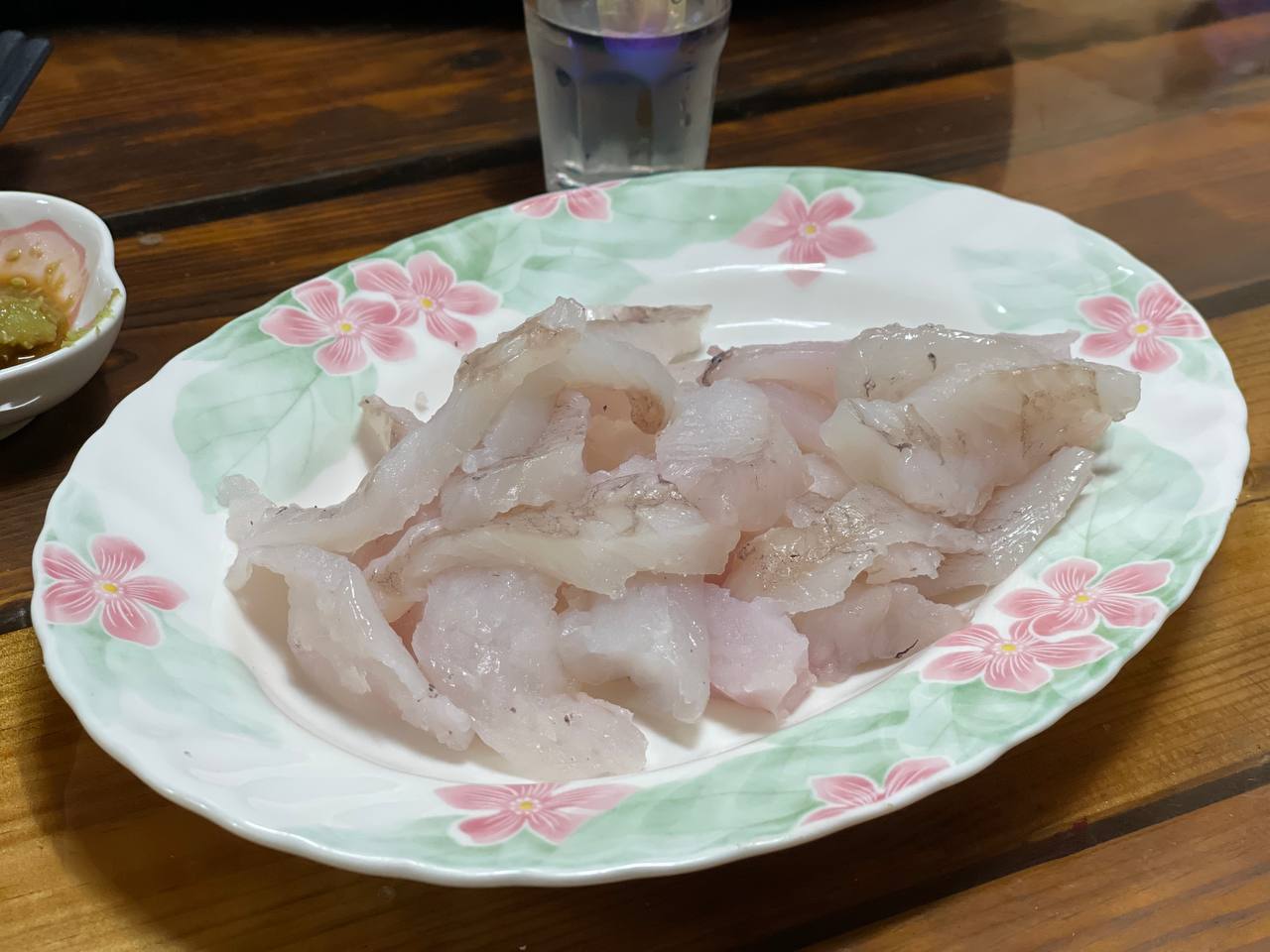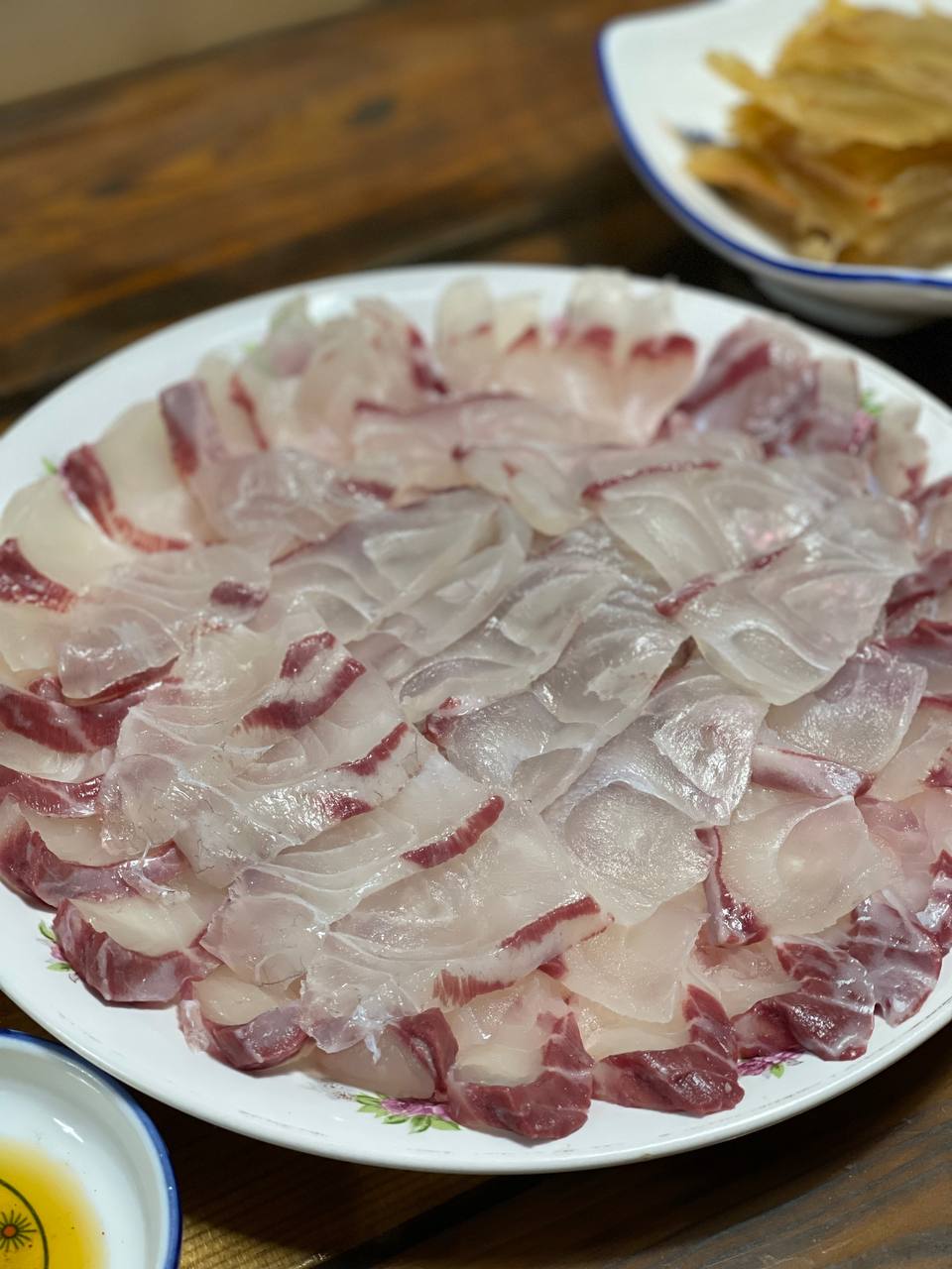 감성돔 회에 기름이 좔좔 흐른다.