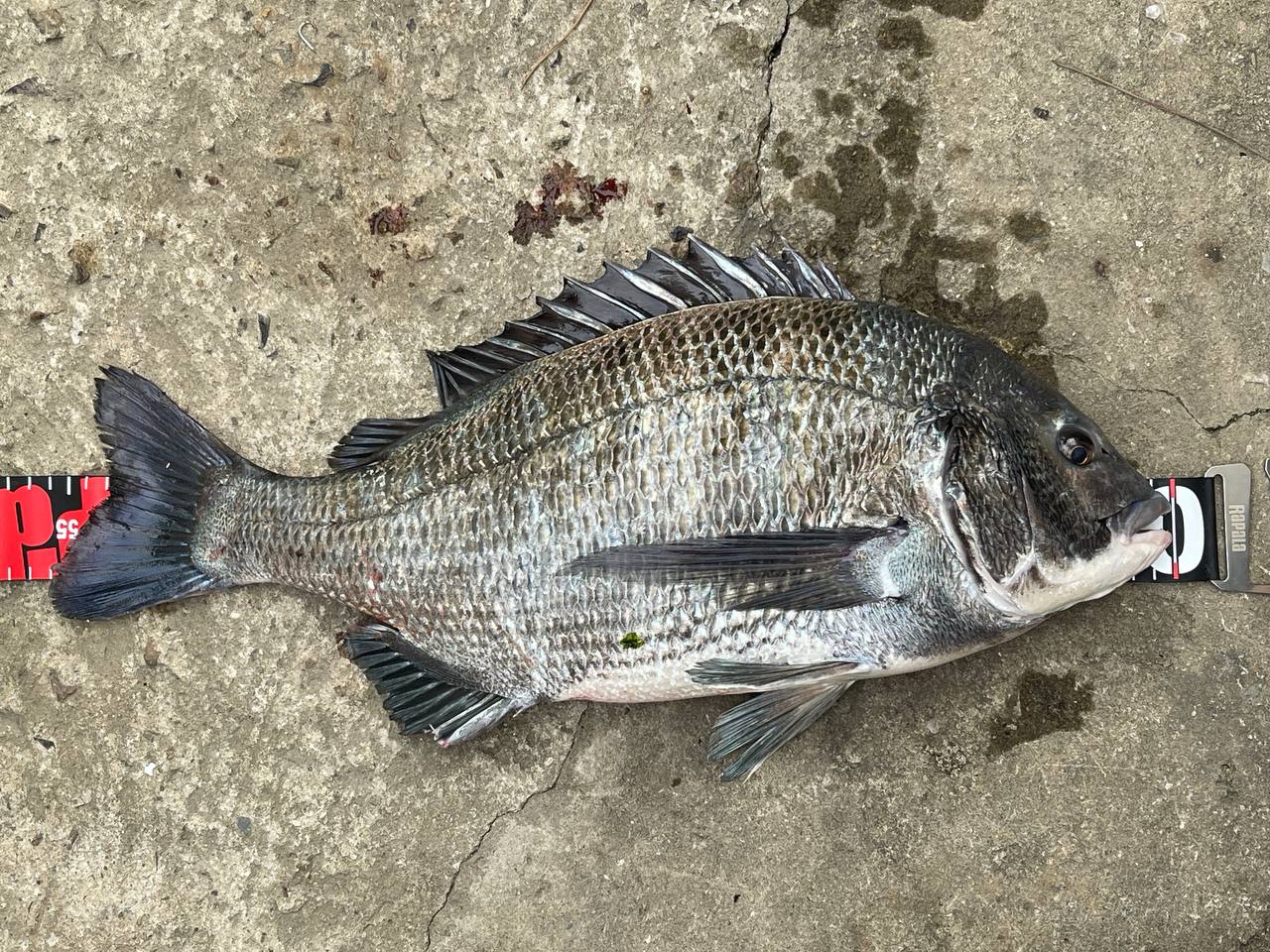 추자도 입도하고 몇시간도 안되어 첫고기가 올라왔는데 5짜 감성돔이라니.