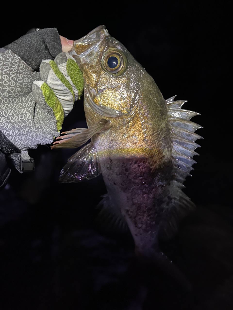 드랙을 계속 풀며 도망가는 놈과 몇분을 씨름하다 겨우 발앞까지 끌고 왔는데 물속에서 몸을 한번 뒤집는데 보니 허옇고 넙데데한게 넙치농어인가.. 하고 생각했는데 조금 더 당기니 헐 감성돔이다.