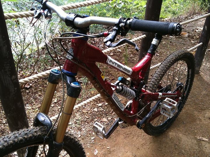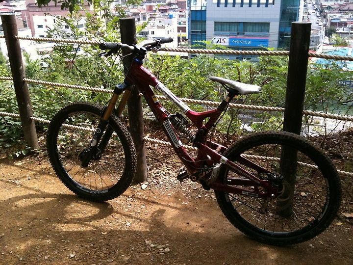 로프 건너편은 낭떨어지, 양쪽은 밑으로 내려가는 길이 있다. 내려가면 본가까지는 도로 라이딩.